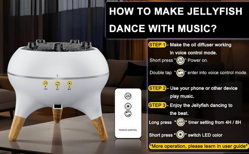 - Child-Safe Certification & Leakproof Design Jellyfish diffuser built with food-grade PP materials, auto power-off (dry tank/tip-over protection), and spill-resistant jellyfish nozzles. Safely diffuse essential oils, purified water. When the water level is too low or when the use time has reached the set time, jellyfish difuser will automatically shut down, and ensure the safety of you and your family.